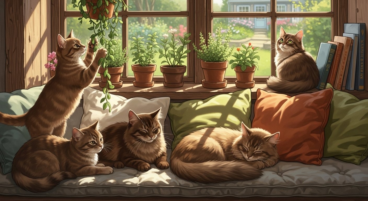 - Safe Spaces: Set up cozy beds or blankets in quiet corners for napping, as brown cats love their beauty sleep.