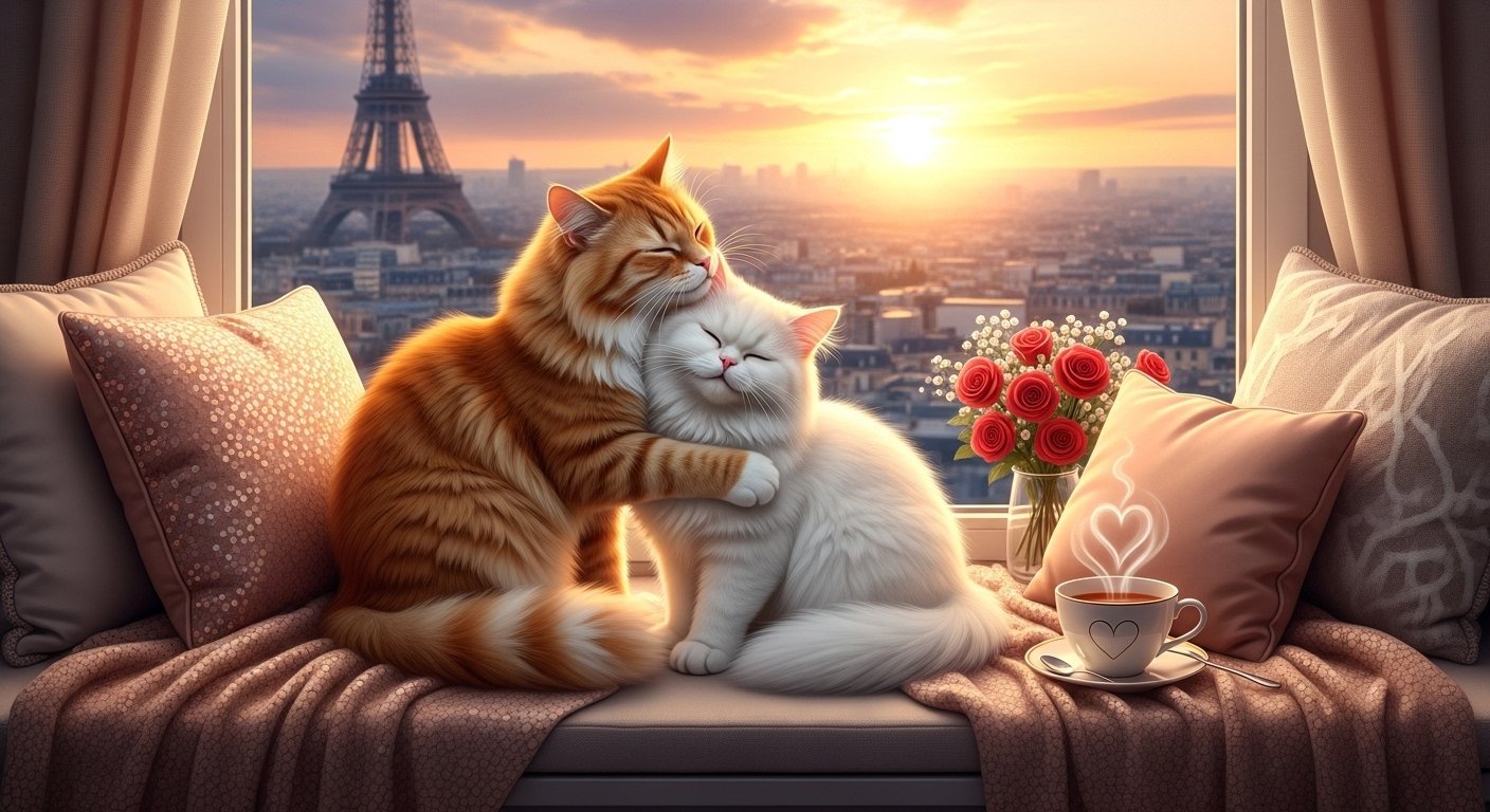Sketch or paint scenes of cats in love—think cats under a moonlit sky with hearts floating around. Use watercolors for a soft, romantic feel. Frame your artwork as a Valentine’s gift.